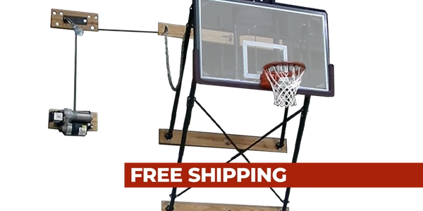 The Fold Up Wall Mount Basketball Goal Free Shipping is ideal for any gym in which the goal will be within 12’ from the wall. This unit is approved for use for all levels of play. Indeed, this system meets NBA, NCAA, FIBA, NFHS, & IBL requirements for competitive play.